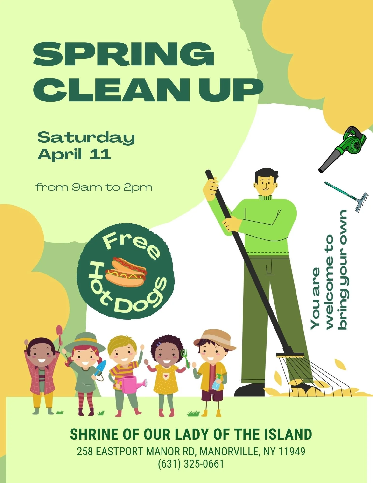 Spring Clean Up Saturday, April 11, 2026 9:00 AM 2:00 PM Shrine of Our Lady of the Island (map) Google Calendar ICS