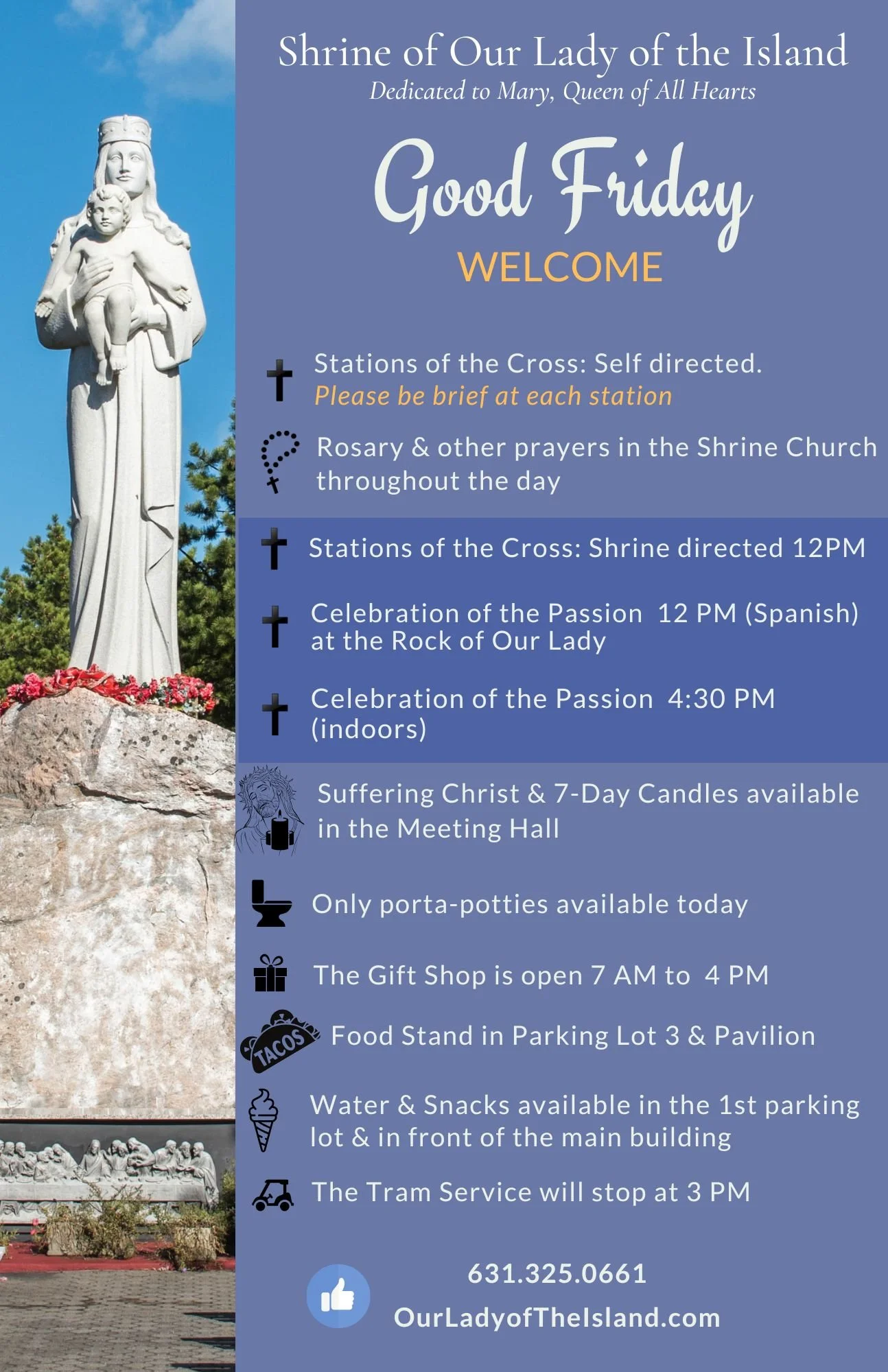 Back to All Events Good Friday Friday, April 3, 2026 7:00 AM 4:30 PM Shrine of Our Lady of the Island (map) Google Calendar ICS